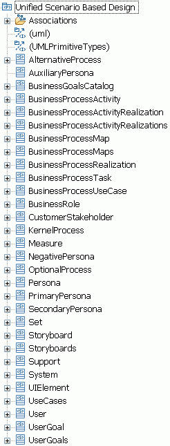 WebSphere Business Modeler 综合特性是同 Rational Software Architect 相伴而来的,并且被用作讲一个在 WebSphere Business Modeler 中被开发的的业务模型导入到 Rational Software Architect 之中。这一特性还包括一个被称作 IBM® WebSphere® Business Integration Modeler Nav Tree Profile 的 UML 规范,它提供了能够自动被应用于在导入期间被转换的 UML 类、接口和其他元素的 UML 模板。 Rational Software Architect 包括另一个被称作 Business Modeling Profile 的 UML 规范,它提供了进一步加强业务模型的其余一组 UML 模板。 为了通过特定于 USBD (基于统一场景的设计)方法论的概念来补足这两个规范,IBM 开发了另外一个规范,即用于 USBD 的 UML 2.0 规范。它定义了另外一组模板,当它们被应用到类时,接口以及其他的模型元素都根据 USBD 概念来表现它们。该规范将和 IBM® Rational® Software Delivery Platform (例如:IBM® Rational Software Modeler 或者 Rational Software Architect)一起被使用。 下一小节将讨论 USBD (基于统一场景的设计)的概念,在后面的小节中,我们将描述如何通过前面所提到的三种规范来刻画这些概念。