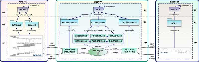 SWRL/OWL and OCL/UML is based on the pivotal (R2ML)