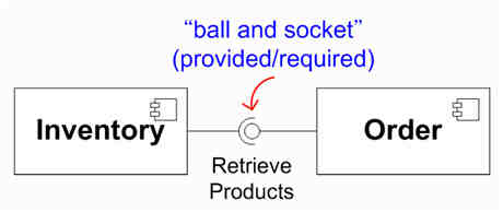 - 例,Order 接口需要“Retrieve Products”接口;而 Inventory 组件提供了“Provide Products”接口。两者构成了“ball and socket”关系。