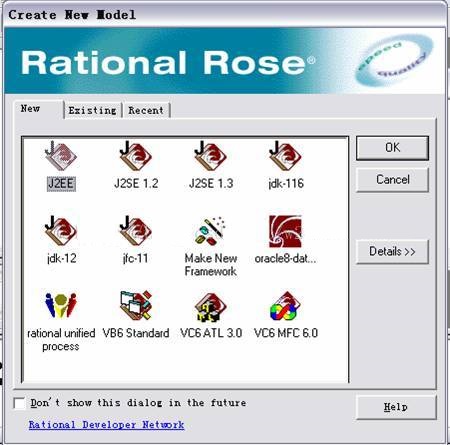 打开RationalRose后,创建新模型,会提供如下模板:
