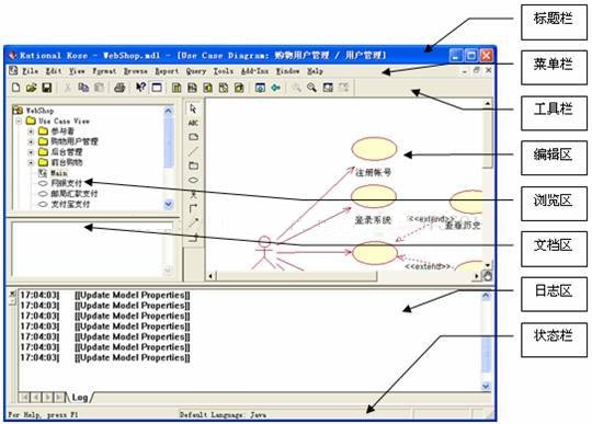 浏览器中有4个视图:Use Case View(用例视图)、Logical View(逻辑视图)、Component View(组建视图)和Deployment View (配置视图)。