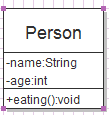 例如定义一个Person类,包含属性name,age,拥有eating方法,则UML类图如下图示: