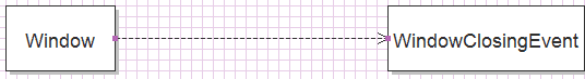 依赖关系是类与类之间最弱的关系,是指一个类(依赖类)使用或知道另外一个类(目标类)。它是一个典型的瞬时关系,依赖类和目标类进行简单的交互,但是依赖类并不维护目标类的对象,仅仅是零时使用而已。例如对于窗体类window,当它关闭时会发送一个类windowclosingevent对象,这里也就可以说窗体类window使用了类windowclosingevent,他们之间的依赖关系如下图示: