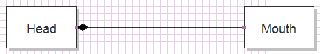 组合(Composition)关系也表示类之间整体和部分的关系,但是在组合关系中整体对象可以控制成员对象的生命周期,一旦整体对象不存在,成员对象也将不存在,成员对象与整体对象之间具有同生共死的关系。在UML中,组合关系用带实心菱形的直线表示。例如:人的头(Head)与嘴巴(Mouth),嘴巴是头的组成部分之一,而且如果头没了,嘴巴也就没了,因此头和嘴巴是组合关系,如下图所示: