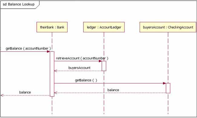 theirBank 对象。那时,调用Balance Lookup序列图,而 accountNumber作为一个参数传递。Balance