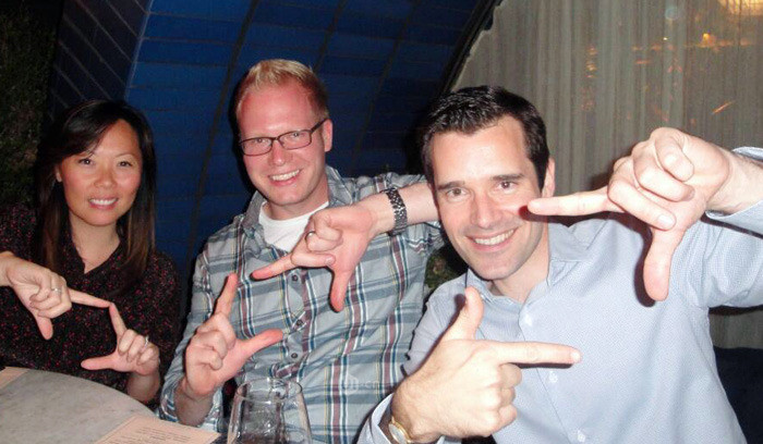 Squared学员在一起拍照时经常会做出这些手势,就像我们拍照之前伸出的剪刀手一样。我是在2012年设计完成前看到这张照片的,它也成了Squared文化的一个部分。