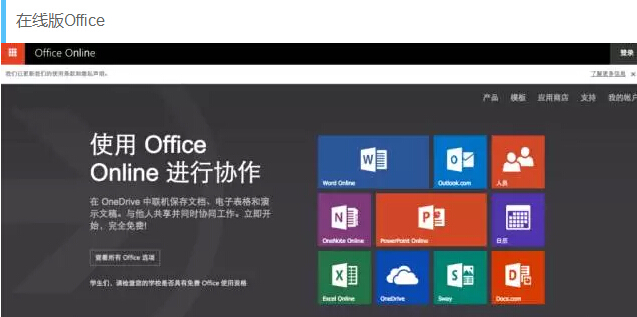 在线版Office是嵌入在 SkyDrive 云存储服务里的在线文档工具。使用在线版Office,你可以在任何地方使用浏览器进行Word、Excel、PPT和OneNote的编辑。并且配SkyDrive 服务可以很方便地在多个台电脑同步文档、协同编辑文档或分享给他人。