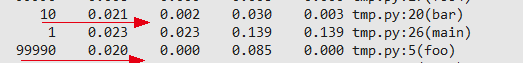 Self等同于tottime。第二部分和第三部分都有很多标签,不同的标签标示从不同的角度来看结果,如图上所以,第三部分的“call