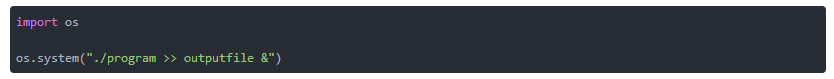system()方法是os模块的一部分,它允许在与Python程序的单独进程中执行外部命令行程序。system()方法是一个阻塞调用,你必须等到调用完成并返回。 作为UNIX / Linux拜物教徒,您知道可以在后台运行命令,并将计算结果写入重定向到这样的文件的输出流(参见示例3):