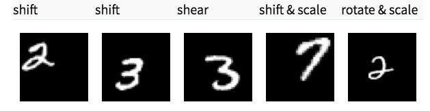 假设我们正在处理的一些手写数字图像,为了扩大训练集,我们能采取的方法有——旋转、翻转、缩小/放大、位移、截取、添加随机噪声、添加畸变等。下面是一些处理过的图: