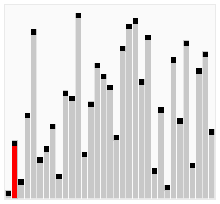 排序算法的逻辑非常简单,首先搜索整个列表,找到最小项的位置,如果该位置不是列表的第1项,就交换这两个位置的元素。然后从列表的第2个元素开始,重复上述过程,直到算法达到整个过程的最后一个位置,图形解释如下