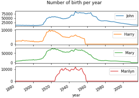 我们先根据此数据来大致观察一下每年的男女出生情况: