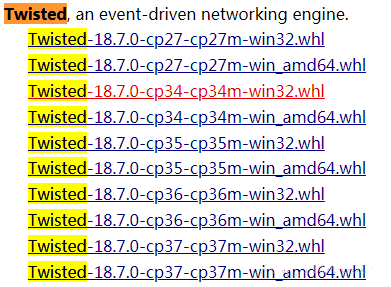 (1)点击下载地址,进入后按 ctrl+f ,搜索twisted,然后下载对应版本