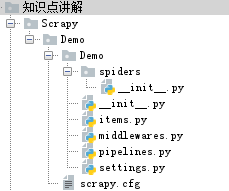 scrapy startproject:表示要执行创建一个新项目的命令 Demo:项目名,可以自定义命名