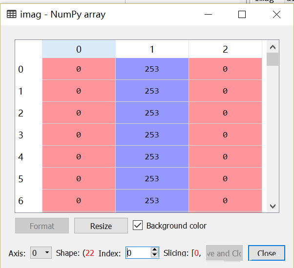 下拉进度条:行可以拖到4200,对应像素的size,列:0 1 2表示RGB三通道,颜色区域的每一个值(253)表示的是像素的颜色