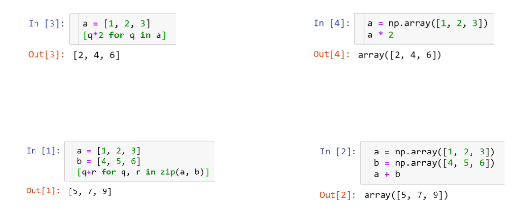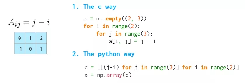 因此,常见的做法是定义一个Python列表,对它进行操作,然后再转换为NumPy数组,或者用np.zeros和np.empty初始化数组,预分配必要的空间: