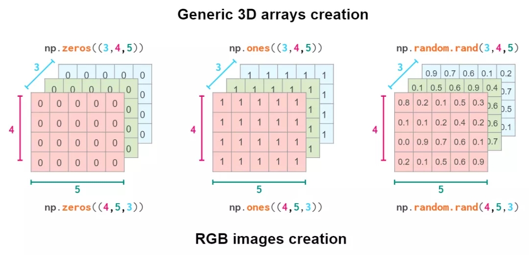通过重排一维向量或转换嵌套的Python列表来创建3D数组时,索引的含义为(z,y,x)。