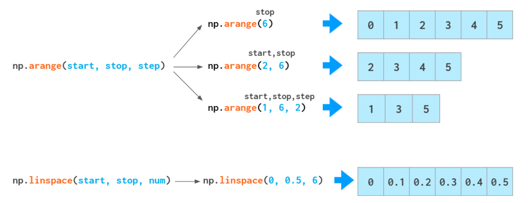 在NumPy中,可以用arange或者linspace来初始化单调序列数组:
