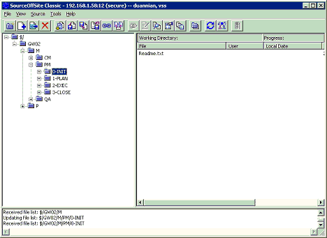 2、 VSS对硬件配置要求不高;作为一个工作组级别的配置管理工具,在我们的项目中,安装VSS的配置服务器是一台P4 2.2G/512M