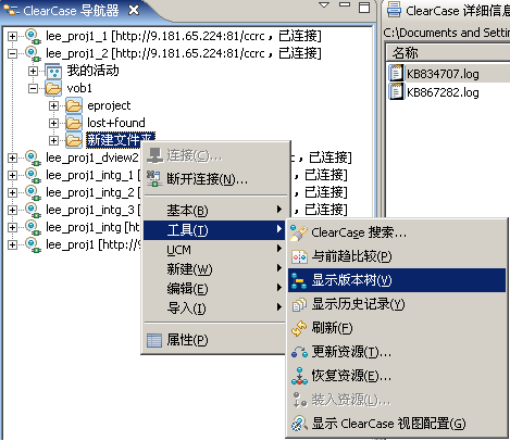 在版本树中可以对节点进行一些CC的操作,当选定一个节点时,相应的操作就会在菜单栏和环境菜单显示。这些操作包括:
