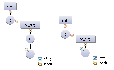 在版本树中,一个元素的分支和版本被显示成连接的节点。版本树的节点分为两种,一种是分支节点;一种是版本节点。每个版本节点上,会显示版本号,节点的旁边会显示于此版本相应的一些信息,例如:关联的活动名称,标签名称。