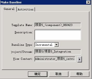 再次在客户端生成该项目基线时,创建基线窗口发生了相应变化,如图13所示: