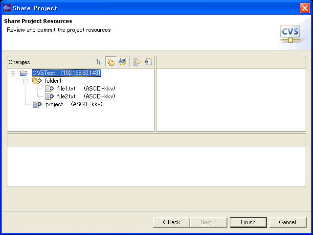 - 点击Finish按钮完成共享,期间对提交和追加确认都选择Yes,并可以输入描述性注释