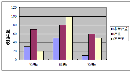 分布图在缺陷分析中最为常用,它用于观察有多少缺陷属于用户指定的某类或者满足用户指定的某值。在这类图表中,又有3种比较常见:等级分布图,产品组件分布图以及缺陷产生原因分布图。