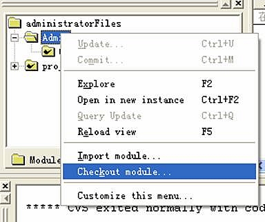建议在该目录下建立admin(名字自定)目录用于保存配置管理文件。admin目录建立后将在工作区中显示出来,右键点击admin,选择checkout