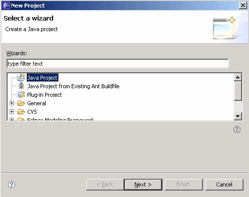 1) 在 Eclipse 工作台中选择 File > New > Project,在弹出的窗口中选择 Java Project。Eclipse