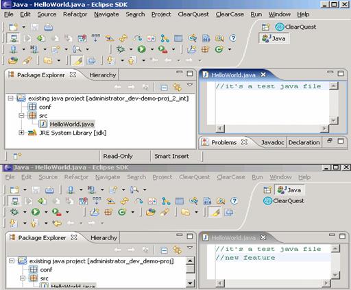 UCM 工作流程下,通过文中两个用例场景我们可以看到 Eclipse 平台强大的整合能力,其通过插件形式把开发人员常用的开发工具、管理工具都集成在一起,减少用户学习不同工具界面的成本,加快用户掌握新工具的速度。通过
