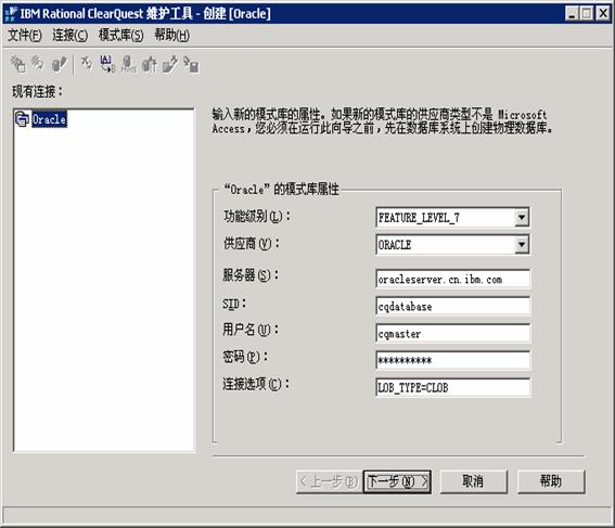 图 4:IBM Rational ClearQuest 维护工具为 Oracle 数据库环境创建模式库和用户数据库示例图
