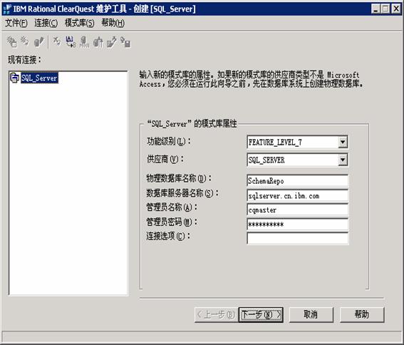 下面示例图就是再用 ClearQuest 维护工具(Maintenance Tool)创建相应的模式库和用户数据库: