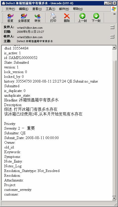 IBM Rational ClearQuest E-Mail Reader 接收处理消息和其邮件通知功能演示一个典型使用邮件双向处理缺陷的场景:
