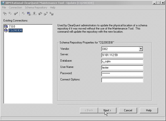 the ClearQuest Maintenance Tool (CQ2003DB in this