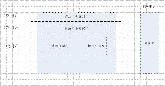 如图二,根据组织层次及工作方式我们定义以下组织架构类型的组,分别为:地市A、地市B、省业务部门提交人、省业务部门审批人、省研发部门提交人、省研发部门审批人、省研发部门分解人、开发商开发人、开发商关闭人。