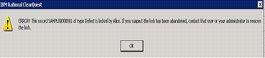 在ClearQuest v7.1以前的版本中,只有一种锁定机制"乐观锁定"。它使用户很方便地更新数据,不需要做任何设置更改,也不需要在乎其他人对该记录的操作,只要该用户直接编辑,便可顺利的完成整个数据更新步骤。从而使用户避免了复杂的加锁解锁操作。这种情况下,在一条数据被"Apply"后,同时更新该记录的其他用户只允许编辑,而不能"Commit"。