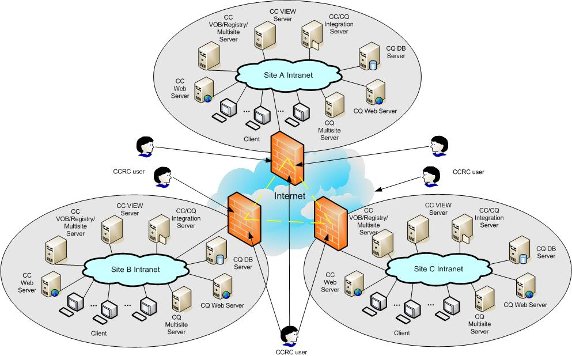 来管理 Base CC/CQ 集成,从图中可以看出开发人员可以使用 CCRC 在广域网的环境中,通过访问