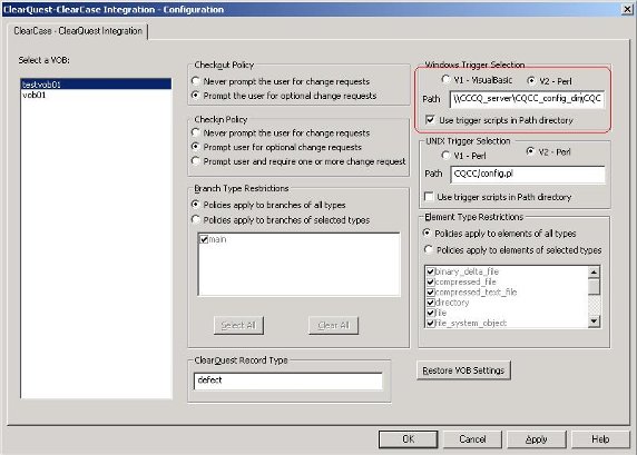 上 Base ClearCase 与 ClearQuest 集成的基础。