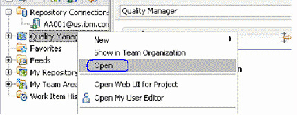 图 9. 打开一个 Rational Quality Manager