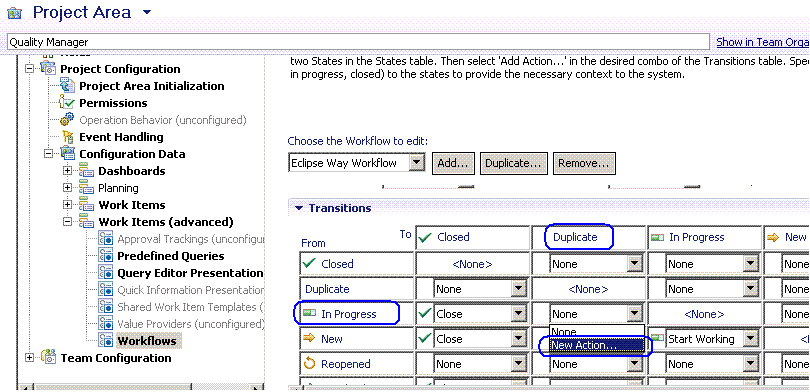Quality Manager 尚没有允许该转变的操作。您可以通过点击列表来添加一项操作,并选择 New