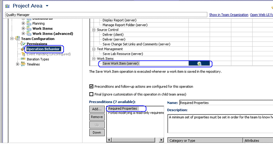 为了解决这个问题,更改 Rational Quality Manager 中的模型以让这个区域变为强制性执行: