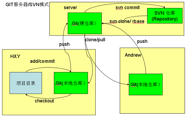 相对于git,传统的SVN有完善的权限管理和用户认证。并支持多用户并发。很多公司原来也是采用SVN的。并且与SVN配合的软件也相当多。因此在保留SVN服务器的同时。使用git来提交也是比较好的模式。