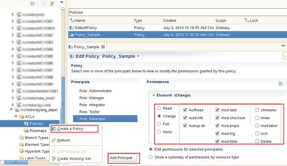 在所有 ACLs 属性打开的 VOB 上会带有默认的 policy 和 rolemap。用户在设计好了所需要的