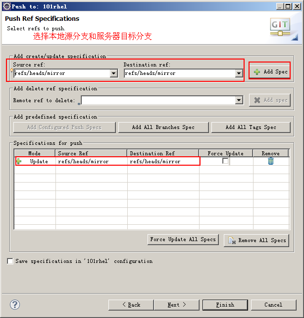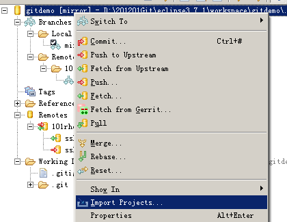 然后push到服务器端的mirror分支,Team -> remote -> Push