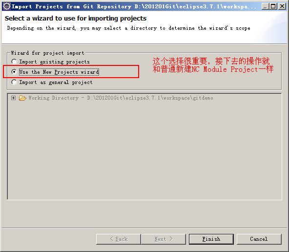 现在已经把远程的GIT仓库克隆到本地,接下来需要将仓库检出为NC模块项目。