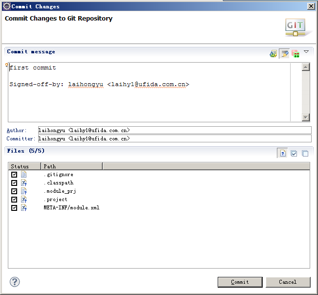 此小结的前提是已经搭 建GIT服务器,并通过SSH协议连接,可参看文档《RHEL下搭建GIT服务器》《WindowsXP下搭建GIT服务器》