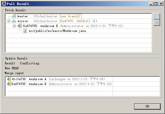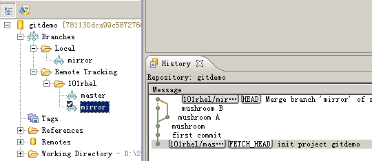 l 接着对Local的mirror分支和Remote Tracking的mirror分支进行merge操作