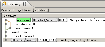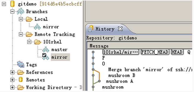 此时服务器端的历史已经被更新,但是Mairo哥哥的remote tracking中mirror分支并没有更新到最新的记录,如图: