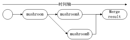 从上图可以看出,mushroomA是在mushroomB之前的,这个时间关系不取决于谁先执行push,而取决于本地仓库中谁先执行commit。所以merge会按照时间顺序严格的记录每一次commit。
